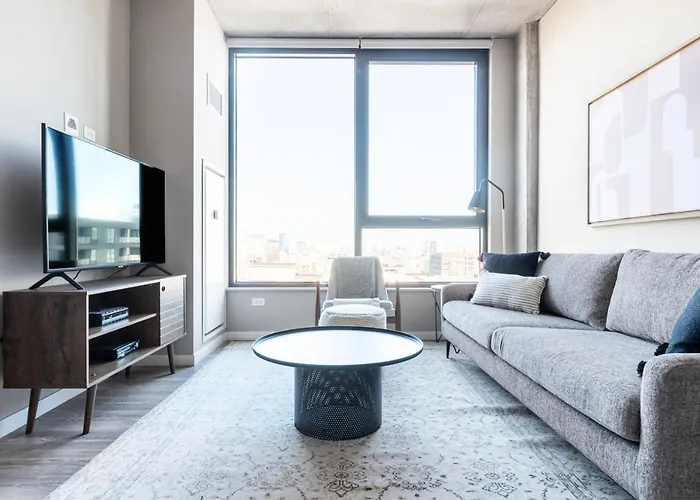 Die 1-Zimmer-Ferienwohnung W Loop 1Br W Pool Gym Nr Fulton Mkt Chi-293 befindet sich im Viertel West Loop von Chicago, ungefähr 500 Meter von der U-Bahn-Station UIC-Halsted entfernt. Fitness-Stunden erweitern das Erholungsangebot von sportlichen Aktivitäten.